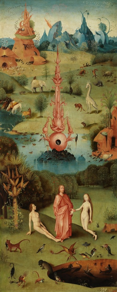 El Edén, la tapa izquierda del tríptico, El Jardín de las Delicias. Museo del Prado, Madrid, España
